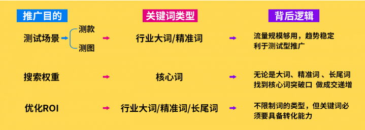 词的类型不同,在推广中运用场景不一样。